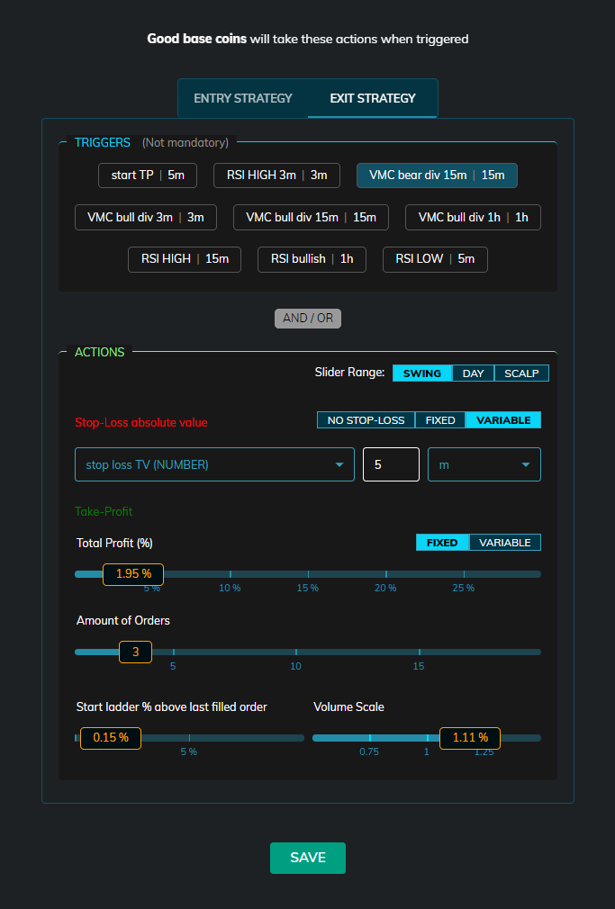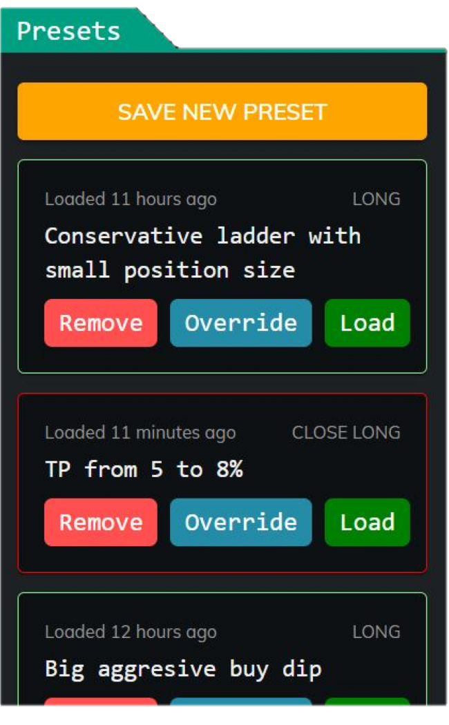When you are ready, you can directly push your orders to your exchange with 1 click or save it and use it in a bot